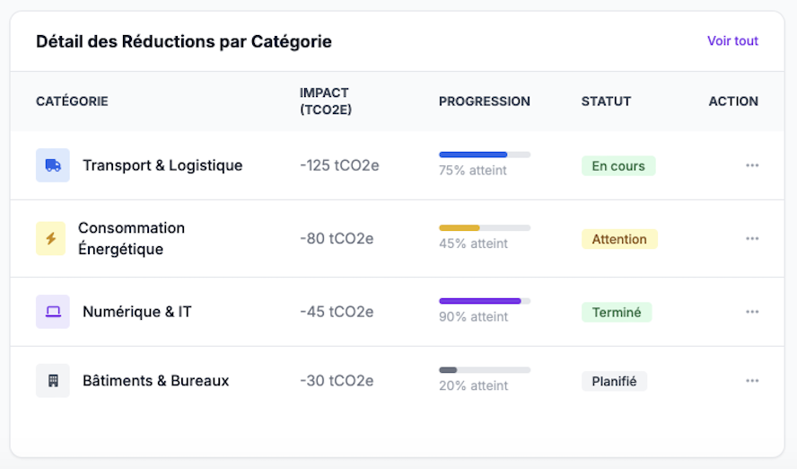 Nous ne nous contentons pas d’identifier des actions. Nous construisons à vos c^tés une trajectoire cohérente, priorisée et adaptée à votre réalité dans l’objectif de réduire durablement vos émissions tout en optimisant vos coûts.